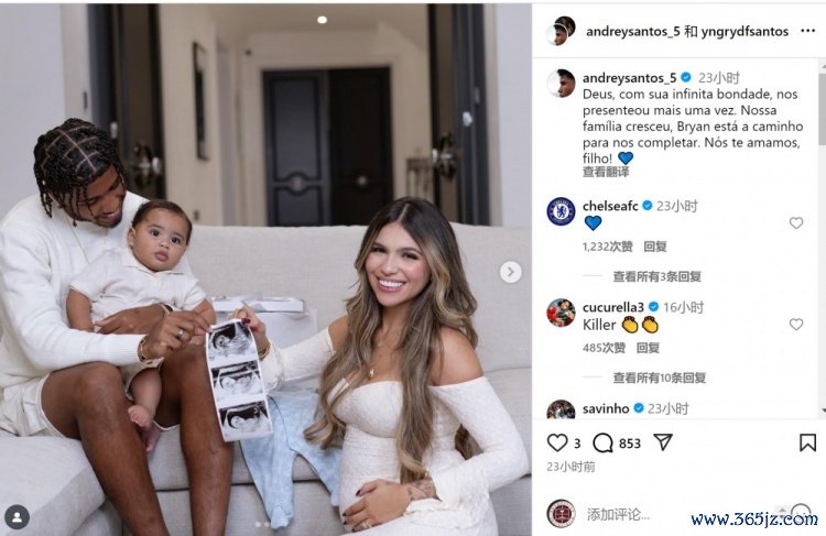 10月17日讯 切尔西中场安德烈-桑托斯更新社媒动态,晓喻妻子怀上二胎。
