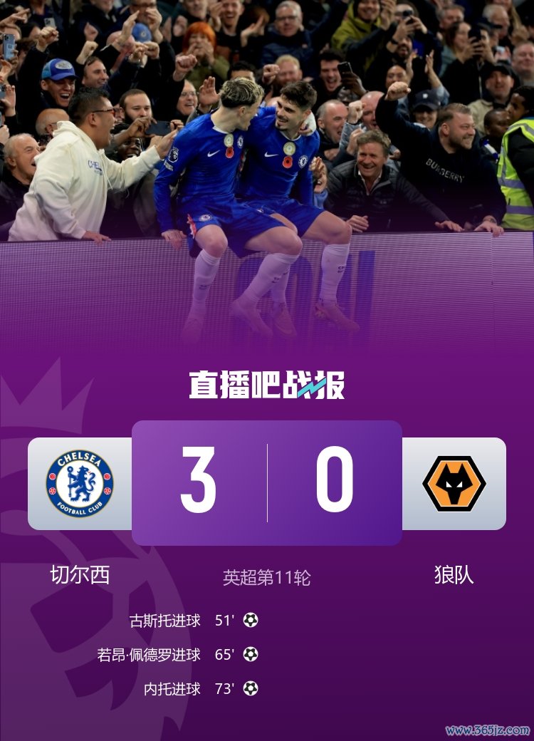 11月09日讯 英超第11轮,狼队0-3不敌切尔西。