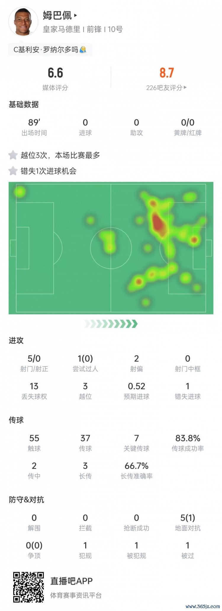 姆巴佩本场比赛数据: