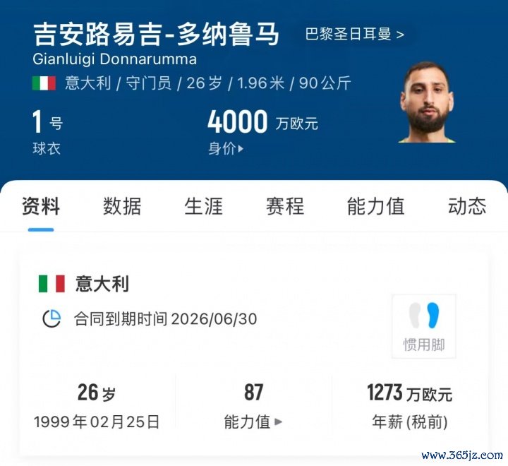 多纳鲁马现年26岁,德回身价4000万欧,他与巴黎的条约将在来岁到期。