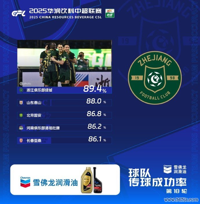 7月28日讯 中超第18轮适度,在传球生着力榜单上,浙江队位列榜首,泰山队第二,国安第三。