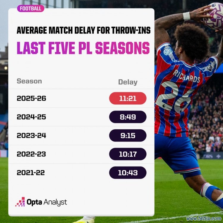 10月30日讯 Opta数据露馅,本赛季英超级待掷界外球的平均期间为11.21秒,近5年最久。