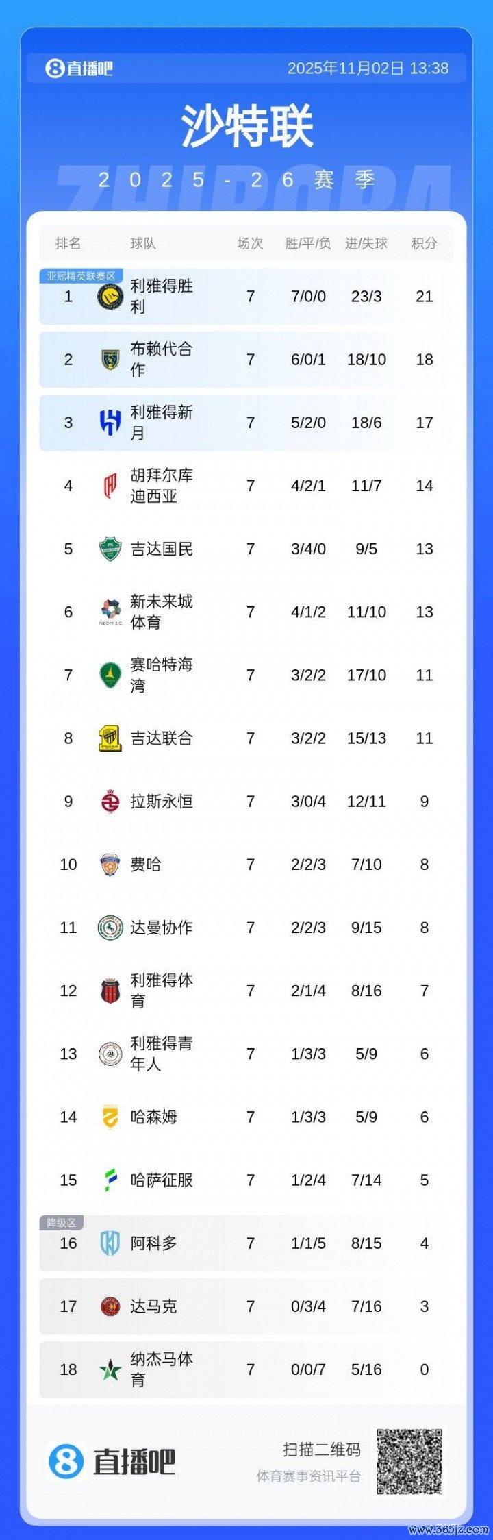 直播吧11月02日讯沙特联第7轮,卫冕冠军吉达聚积4-4客平赛哈特海湾。