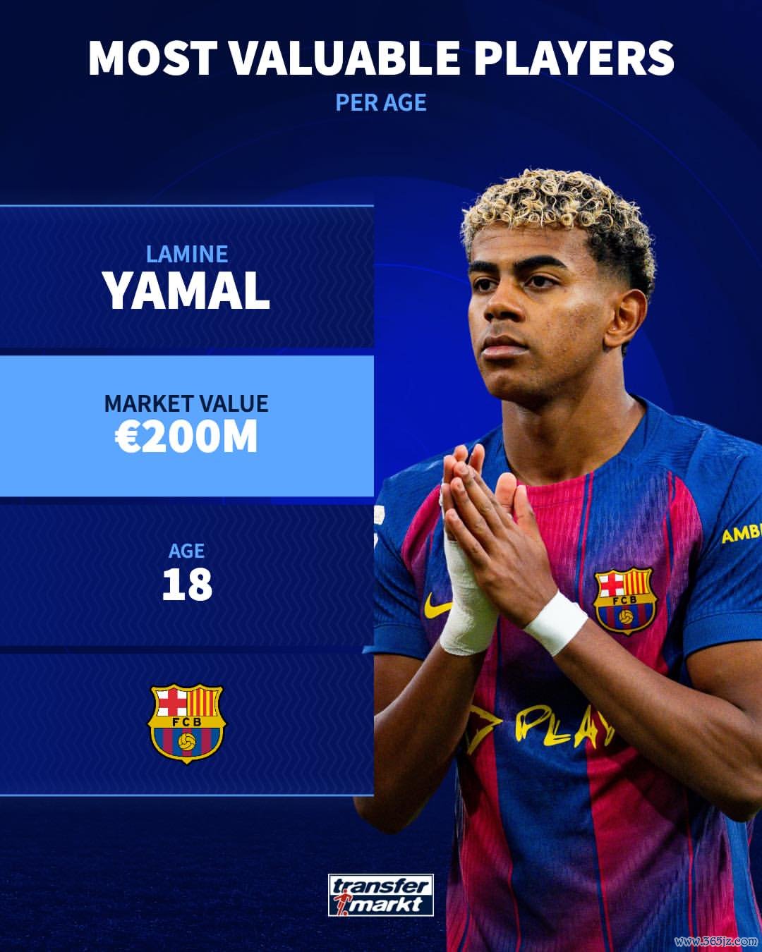 3.亚马尔,18岁,巴塞罗那,身价2亿欧元