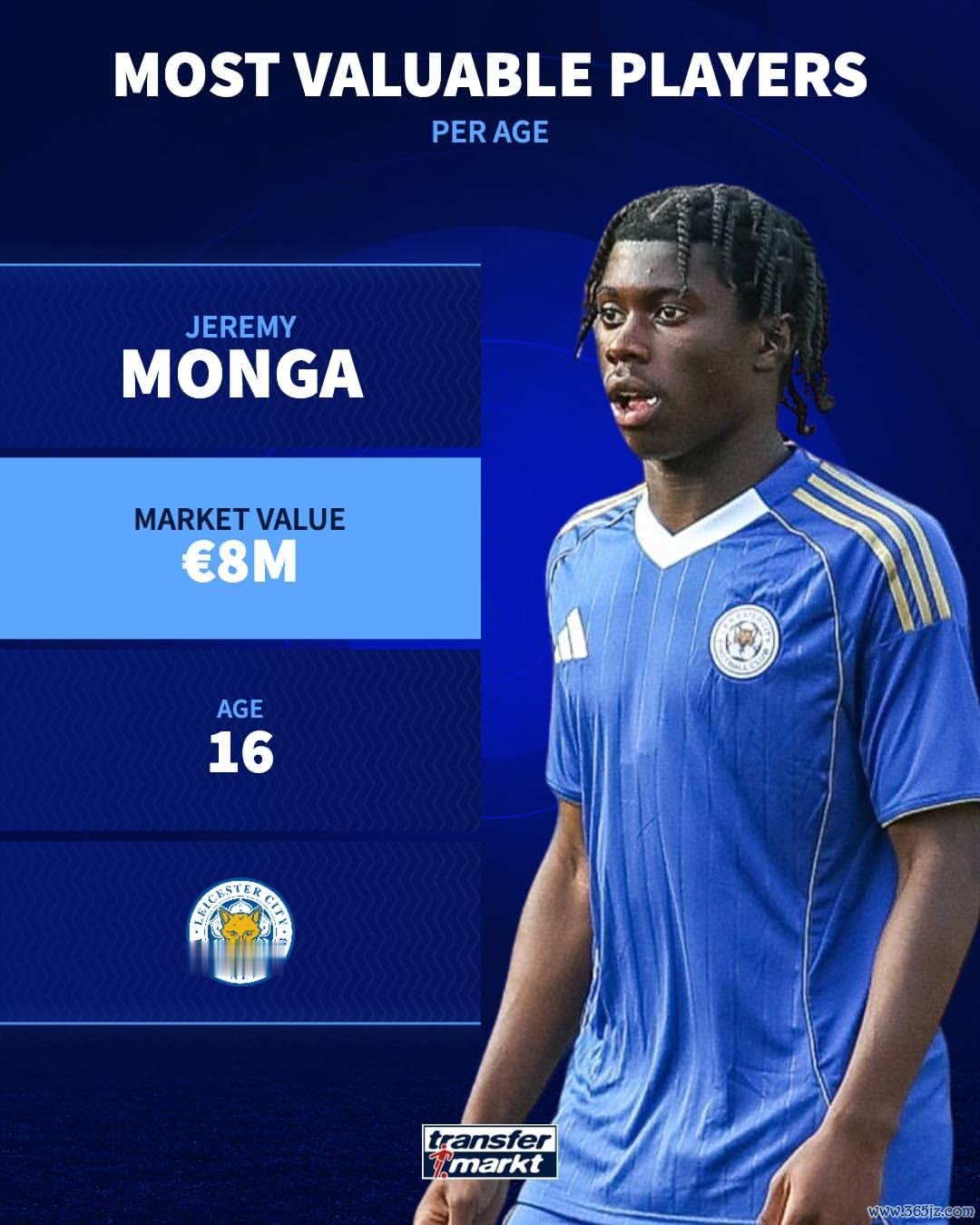 1.蒙加,16岁,莱斯特城,身价800万欧元