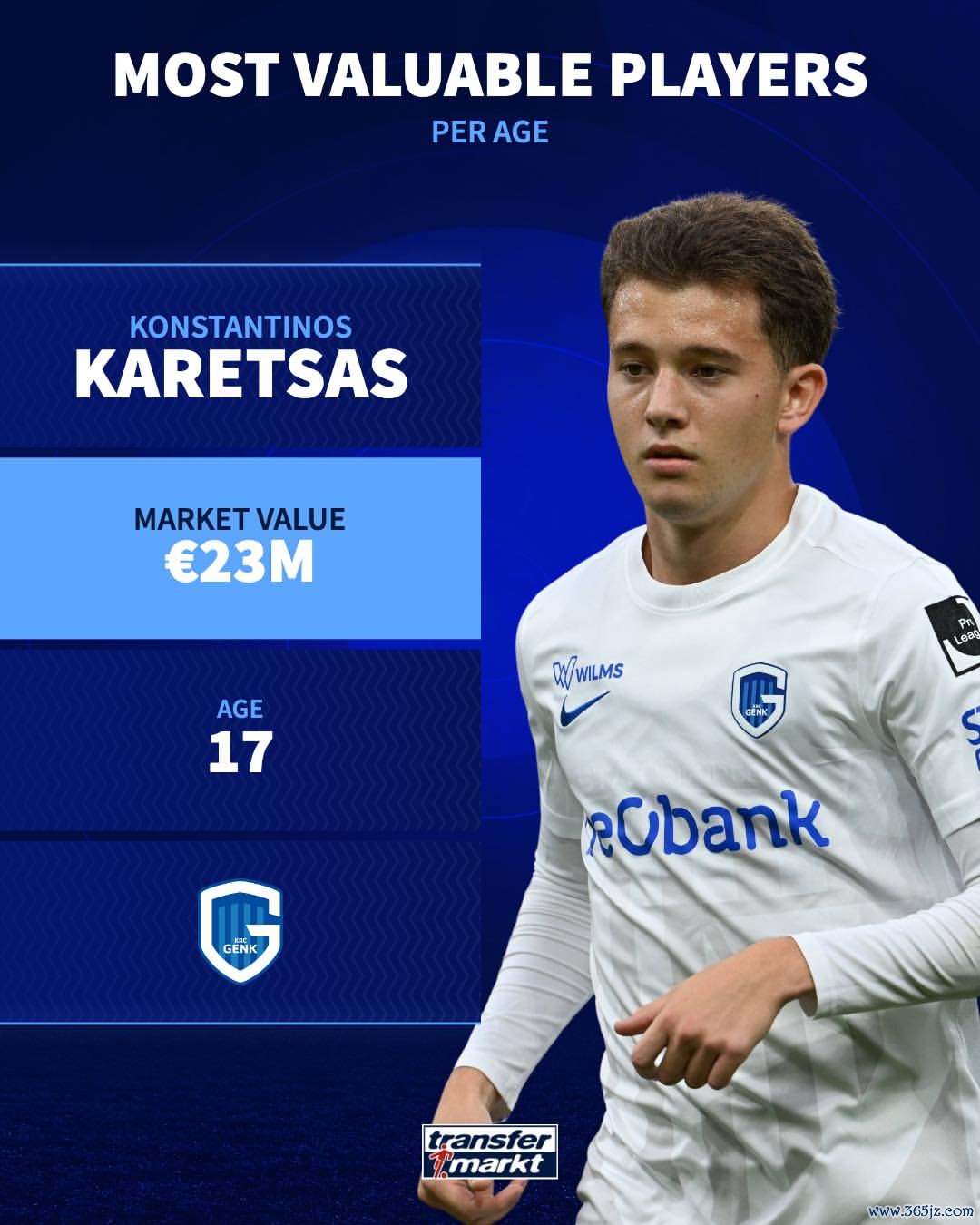 2.卡雷萨斯,17岁,亨克,身价2300万欧元
