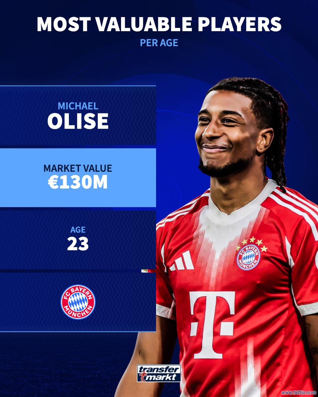 8.奥利塞,23岁,拜仁慕尼黑,身价1.3亿欧元
