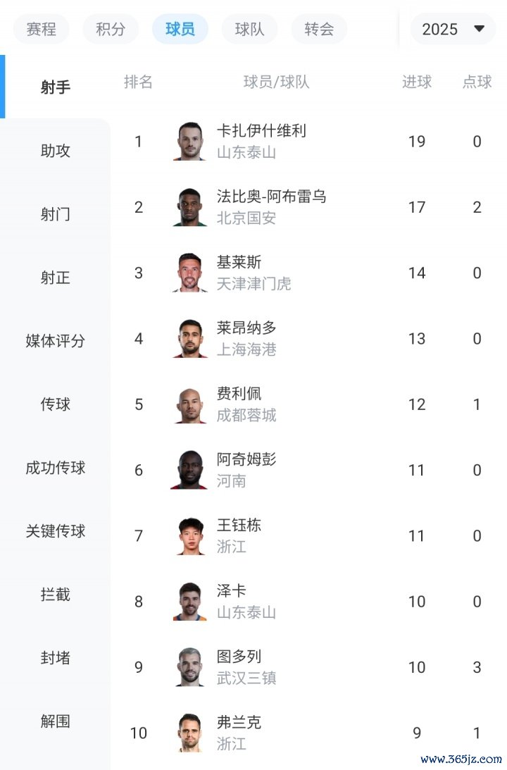 山东泰山6-0大捷北京国安,卡扎伊什维利演出大四喜登顶中超弓手榜,法比奥颗粒无收以17球退居第2。