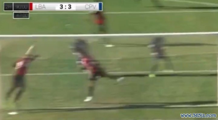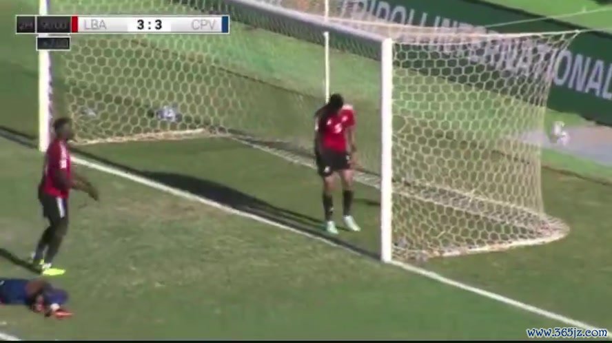 佛得角队员射门遭敌手门线突围