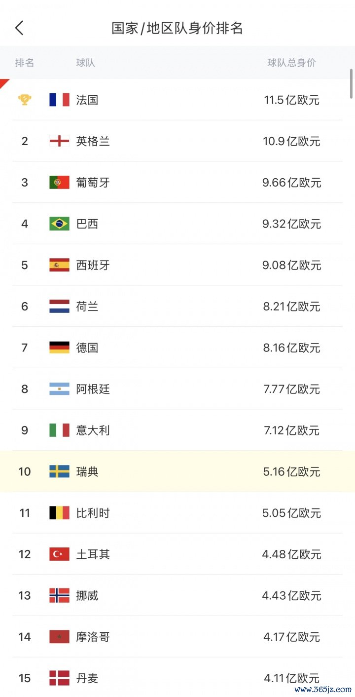 瑞典全队身价高达5.16亿欧,位列寰球第10,阵中有身价1.4亿欧的伊萨克(利物浦)、7500万欧的约克雷斯(阿森纳)、5500万欧的伊兰加(纽卡)、4000万欧的雨果-拉尔森(法兰克福)、4000万欧的贝里瓦尔(热刺)和3000万欧的希恩(亚特兰大)。