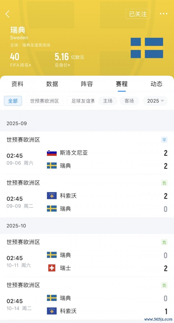 9月世初赛,瑞典2-2斯洛文尼亚、0-2科索沃,名次从寰球第29跌至第32;10月世初赛,瑞典0-2瑞士、0-1科索沃,名次又从寰球第32跌至第40。现在,瑞典辞世欧预B组名次垫底。