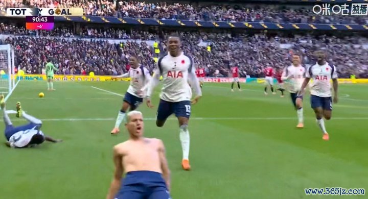 11月08日讯 当天英超曼联客战热刺,比赛第91分钟里沙利松破门反超曼联!进球后里沙利松脱衣豪情庆祝,随后捂脸情难自已。