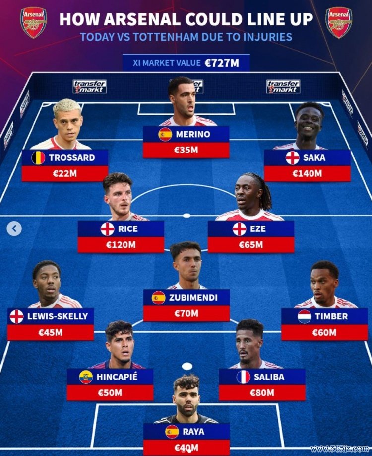 11月23日讯 阿森纳将在本轮英超焦点战对阵热刺,《转会商场》统计泄漏队内最多可能有8东说念主无法出战。
