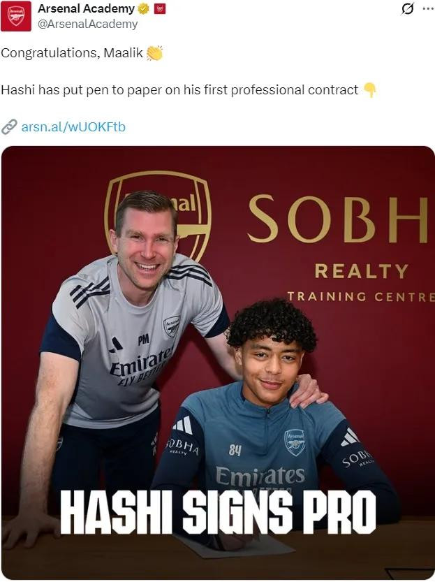 官方:阿森纳宣布马利克-哈希签下了他的第一份职业球员劳务协议。