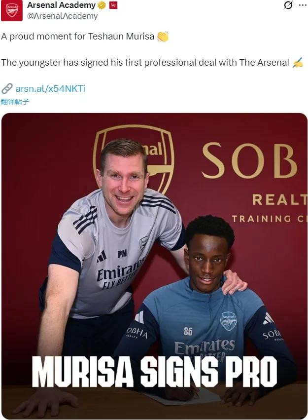 官方:阿森纳宣布和特尚-穆里萨签下了他的首份职业球员劳务协议。