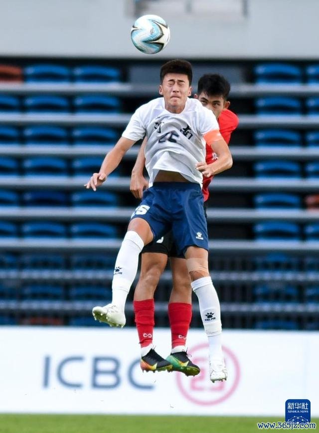 10月14日,河南队球员陈翰阳(前)在比赛中争顶。新华社记者 毛念念倩 摄