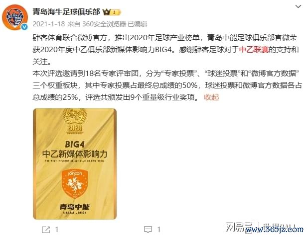 这是一篇懂球帝《青岛中能足球俱乐部2020赛季中乙联赛出征典礼》(2020.10.12)中的图片,左上角队徽有“1993”字样。仅仅球队官方微博中缺失了自2018.08.25到2020.11.15的统统实践。