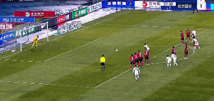 第19分钟,杨立瑜主罚左侧角球到禁区,塞尔吉尼奥甩头攻门顶进死角,国安1-0素质。