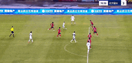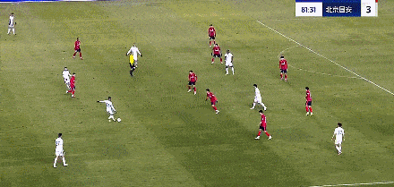 第77分钟,法比奥禁区中路忘我分球,禁区右侧的张玉宁迎球推射远角告成,国安3-0素质。